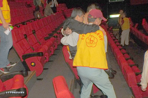 當我坐在座位上,我真 是太感動了,心中滿滿的感 激,真的不是一、兩句「謝 謝」就能表達的。欣賞完精 彩的電影,同樣的工程又必 須再來一次,把大家搬回輪 椅,看到志工朋友的身軀並 不強壯,為什麼他們願意出 那麼多的力氣來幫助會員呢 ?這些不求回報的志工默默 的付出,我想就是大愛的典 範。因為有你們才能完成大 家的夢想,在苦悶的日子中 找到了出口,會員朋友們都 要向你們致上最高敬意。