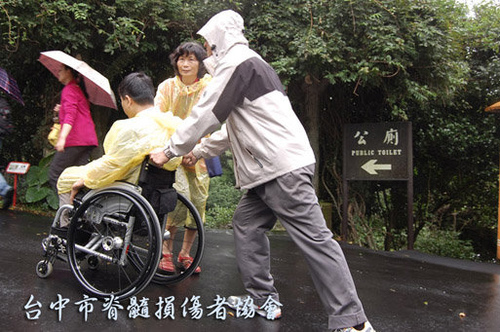 陽明山公園下著小雨,大家只好穿上雨衣,其實下雨天對於會友以及協助推輪椅的志工是一件很不方便的事,雖然有點小遺憾,但是看到了中午的豐盛便當及陽明山美麗的風景,這點遺憾就不算什麼了,反而是難得的經驗。