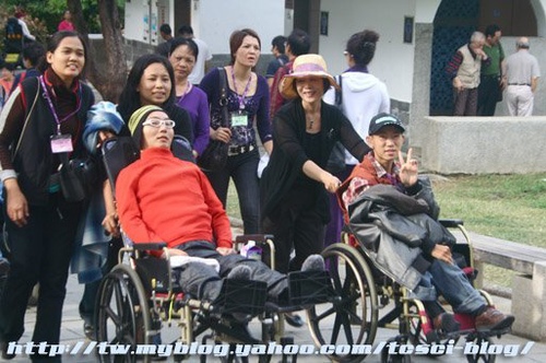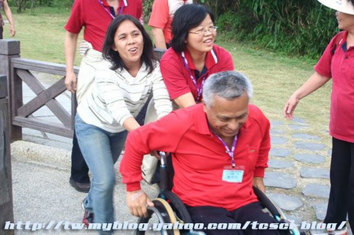 住宿當晚,因緣巧合,我與中秋節訪視的會員陳鳳明被安排在同一間房。陳姐看到我好開心,身旁站著她的大姐陳萍,看起來五十好幾。還記得鳳明姐被訪視時説過,她的家人對她非常關懷,受傷後的照料問題,都是家裏的大姐和二姐細心打理安排。陳家大姐的身旁還有一位年輕可愛的越南看護,國語說得很溜。看護是鳳明姐居住的護理之家跟出來的,院長特地放看護一天假,讓她外出照顧鳳明姐順便遊玩。即便有看護在一旁,很多照護的工作陳家大姐還是堅持自己來,明明自己很瘦弱,腰部還綁著束帶,還是自行把妹妹從輪椅一把抱起,放在床上,幫妹妹翻身、清潔。陳家大姐是自立自強的好榜樣,從她憔悴的臉龐和堅毅的眼神,看得出滄桑的印記與生命的韌性。