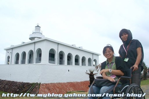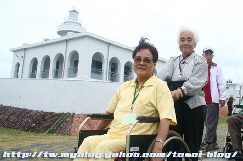 解說員表示,這座有一百五十年歷史的燈塔是世界少有的武裝燈塔:塔基有砲台,四周白色圍牆開鑿砲眼,牆外有壕溝。燈塔的結構和設計,反映清末民初動盪不安的時空背景。雖然已經是冬天,這裡除了風大,四周依舊可見綠油油的草地,蔚藍的海洋感覺就在不遠處。
